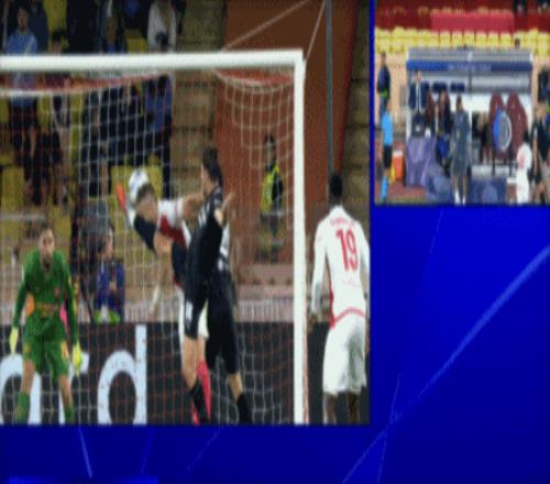 第18分钟,迪亚塔左路传球,特泽弧顶右脚远射轰入世界波,1-1!摩纳哥扳平。