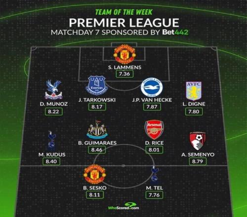 拉门斯和谢什科入选WhoScored评选的英超周最佳阵容