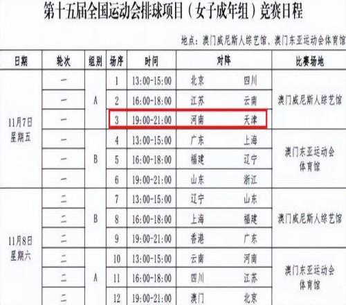 全运会女排比赛详细赛程在近日出炉,第一天比赛就迎来重头戏。卫冕冠军天津女排将和朱婷领军的河南女排交手。李盈莹大战朱婷,毫无疑问将是一大看点。这场比赛也特意被安排在了当天的黄金时间19点开打。