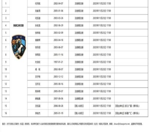 直接从宏远青训租借了,段锦楦、张家睿、赵保乐三名小将,还有同为宏远青训出身的邹运、曾效力于广州龙狮的李健豪和程诺。而此前因伤没再代表南京同曦出战的选秀球员李云开也完成新就业。