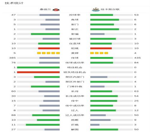 第46分钟,沃尔特马德头球不慎送乌龙,桑德兰1-0纽卡