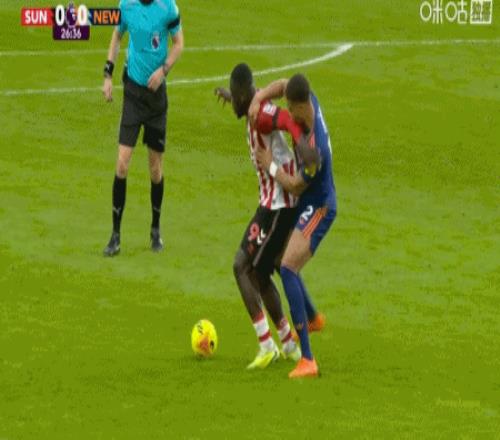 第34分钟,穆杰莱铲球时膝盖顶到丹-伯恩胸口,裁判出示黄牌对其警告