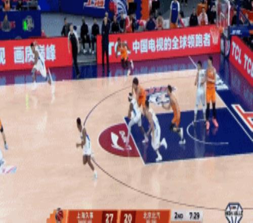 川队半场12分4板2助2断,杰曼11分3板4助,全队除了范子铭外人人都有得分,北京凭借节末一波12-3,单节轰下33分,半场北京46-40反超上海,相当不可思议,许利民自己也看乐了。