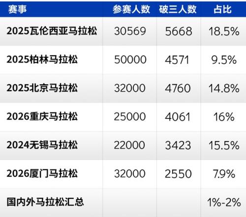 曾经高不可攀的“破三”,正逐渐褪下“大神”的面纱,越来越多的跑者加入“破三大军”。以至于跑圈内甚至有一句戏言:“破三?不是有腿就行么?!”