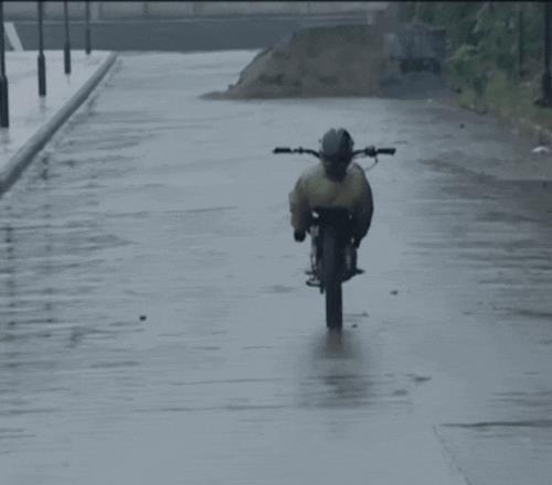 高速行驶的路上,雨像子弹一样打在张雪冻得酱紫的脸上。