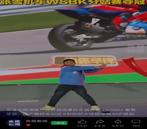 在世界超级摩托车锦标赛(WSBK)葡萄牙站的分赛场上,由“张雪机车”自主研发的赛车820RR-RS,获得分组赛冠军。