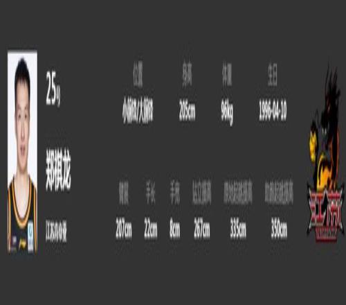 郑祺龙本赛季出场时间暴跌,场均只有7.6分钟,仅得到1.9分0.9篮板,而他新秀赛季曾经场均得到9.6分4.5篮板数据。