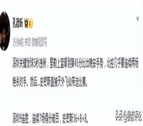 裁判经过录像回看,史密斯出手前时间尚未走完,但这个属于踩线三分,被扣除了一分,但仍帮助深圳男篮完成比分反超,上演惊人绝杀。