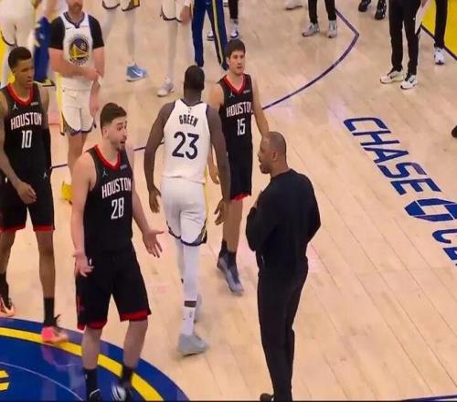 格林接球后被防得差点失误,直接暴起将球砸向小贾,然后两人撞在一起爆发了激烈的口角,追梦期间先架住了小贾双臂,小贾不乐意推开,双方爆发肢体冲突。