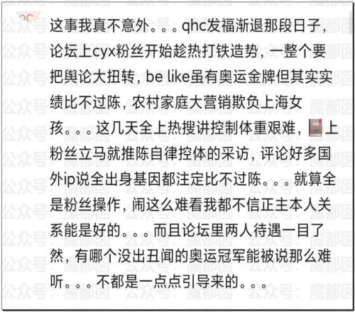 目前唯一可以确定的就是粉圈对于QHC的伤害非常大,但是到底是否有其他运动员授意或者参与目前均没有实质性证据,希望大家不要被误导。