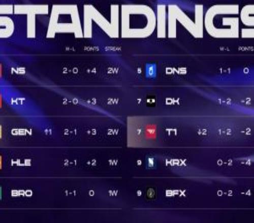 T1在LCK常规赛的排名暂时来到第七,与DK并列。