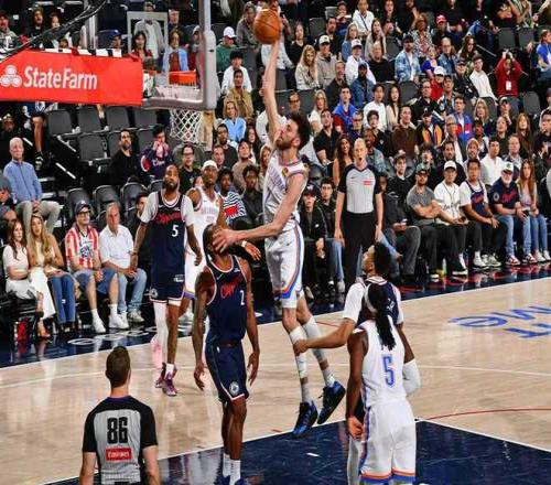 北京时间4月9日,NBA常规赛卫冕冠军雷霆客场对阵快船,双方均是背靠背第二场。雷霆在霍姆格伦与亚历山大出色表现引领下,持续压制快船逐步扩大25+领先优势提前锁定胜局,最终雷霆128-110横扫快船收获7连胜。雷霆锁定本赛季常规赛冠军,雷霆连续两季锁定联盟第一,马刺锁定西部第二。