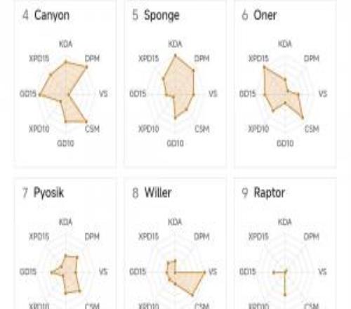 体育资讯4月11日称 近日,有国外粉丝制作了4月10日前LCK联赛的选手数据雷达图,其中打野位置里数据最佳的是BRO的打野GIDEON与KT打野Cuzz,而BFX打野Raptor的雷达图则成了“时钟图”!