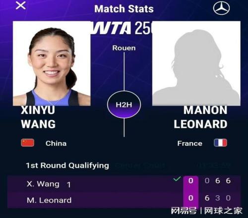 北京时间4月11日晚,WTA250法国鲁昂站资格赛首轮上演了一场惊心动魄的“过山车”大战。世界排名第32位的中国金花王欣瑜,面对排名远在250名开外的法国本土外卡选手玛农·莱昂纳德,竟然在首盘0-6惨遭“送蛋”。随后王欣瑜如梦方醒,以6-3 6-0连下两城完成超级逆转,惊险晋级资格赛决胜轮。这场从地狱到天堂的跌宕之旅,让所有观赛的中国球迷捏了一把冷汗。
