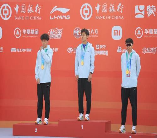 王文杰(中)北京半马夺冠。新京报记者 王飞 摄