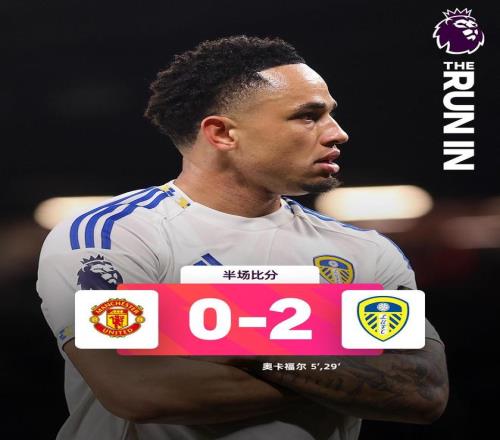 上半场比赛结束,曼联0-2落后利兹联。