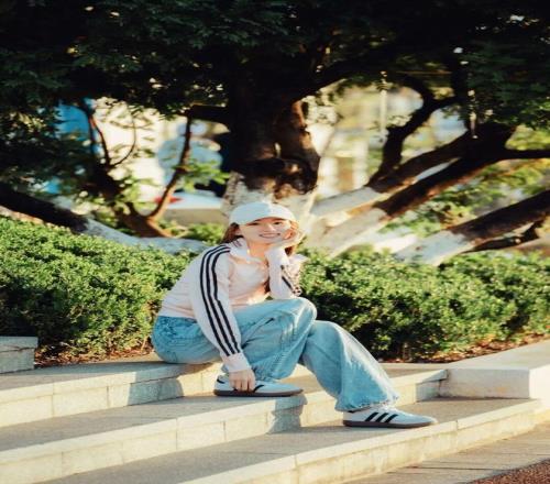 她平时很少化妆,即使化,也都是打个底那种很淡的妆。跟品牌签约后,三叶草系列就基本满足了她日常生活的穿着需求了,是代言品牌的忠实用户。她平时还蛮休闲的,上半身一件开衫,很随性的穿搭,像裙子之类是基本不穿的。最常见的装扮就是休闲牛仔裤。