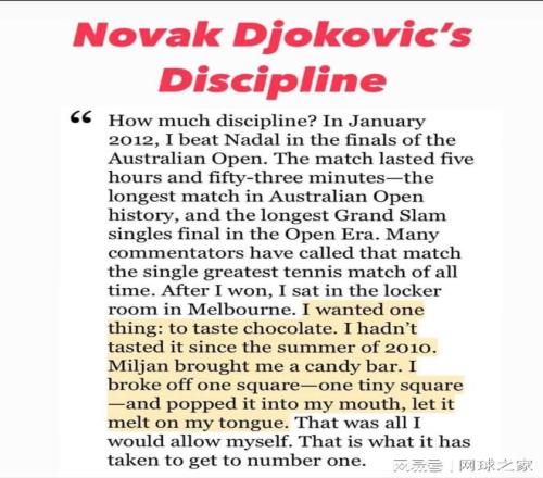 德约科维奇在自传《一发制胜》中描述奖励自己吃一小块巧克力的故事