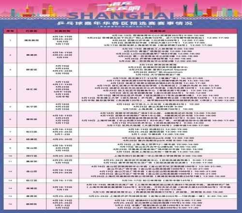 比赛地点:百联中环购物广场B1中心圆、4楼观岚记乒乓馆