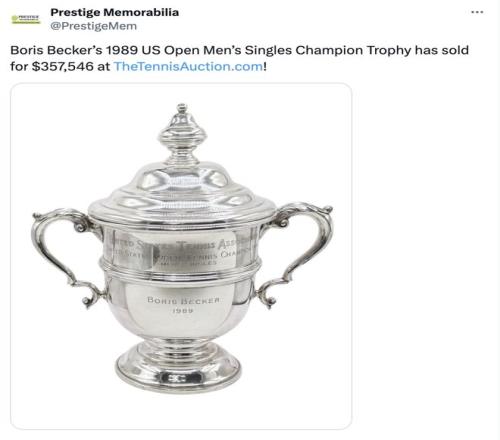 最近,1989年美国网球公开赛男单冠军的奖杯进入了公众视野,它以357546美元的价格落槌。这一成交价,不仅刷新了网球冠军奖杯的纪录,也让它成为目前市场上第二昂贵的网球类纪念品,仅次于前面提到的那把球拍。