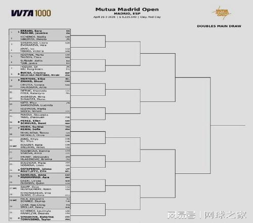 另外,WTA1000马德里站的双打签表北京时间昨晚出炉。中国有四朵金花出战,首轮对阵如下:张帅/梅尔滕斯 vs 科斯蒂亚/卡林斯卡娅、杨钊煊/帕诺娃 vs佩雷兹/舒尔斯、蒋欣玗/徐一璠 vs博尔特/大威廉姆斯。