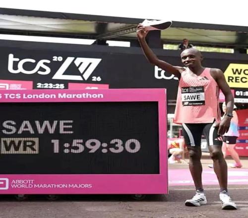 伦敦时间4月26日中午,马拉松运动见证了历史性的一刻。肯尼亚选手萨巴斯蒂安·萨维以1小时59分30秒的成绩夺得伦敦马拉松男子组冠军,打破男子马拉松世界纪录,并成为史上首位在符合纪录认证条件的正式比赛中跑进2小时大关的运动员。此前,男子马拉松世界纪录为已故肯尼亚名将凯尔文·基普图姆在2023年芝加哥马拉松创造的2小时00分35秒,萨维在“破2”之余,还将世界纪录提升了足足65秒。