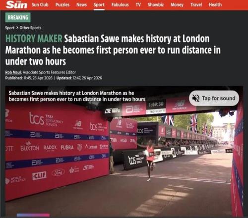 英国《天空体育》则以萨维夺冠和“破2”为核心,称他以1小时59分30秒赢得2026年伦敦马拉松,成为史上首位跑进2小时的男子马拉松运动员。报道特别呈现了这一成绩所需的惊人配速:平均每公里约2分50秒,半程需跑到59分45秒左右。萨维赛后感谢伦敦观众的支持,并表示这一天的成就“不只属于我,也属于伦敦的所有人”。同时,天空体育也将阿塞法刷新女子组纪录、胡格第八次伦敦夺冠等表现纳入报道,凸显本届伦敦马拉松是多项纪录共同被改写的一天。