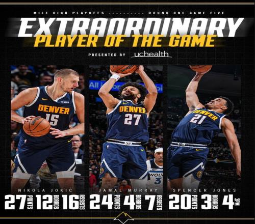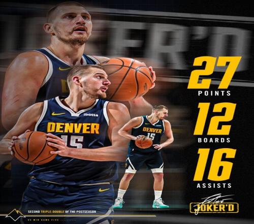 尼古拉-约基奇这场比赛终于克服了心魔,他吊打了戈贝尔,全场比赛37分钟,15中9,三分4中1,罚球10中8,拿到27分16助攻12篮板2盖帽,命中率60%,真实命中率69.6%,正负值+18。