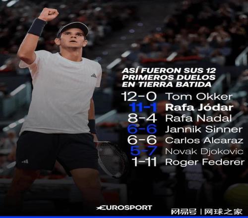 此外,闯过丰塞卡这道关后,霍达尔还创造了一项了不起的成就。在职业生涯迄今参加的前12场红土巡回赛上,他豪取11场胜利,只输了一场,在这项数据方面直接超过了西班牙传奇纳达尔当时创下的8胜4负,仅次于现在排在首位的汤姆奥克,在这份榜单上硬生生将老大哥纳达尔挤到了第三位。